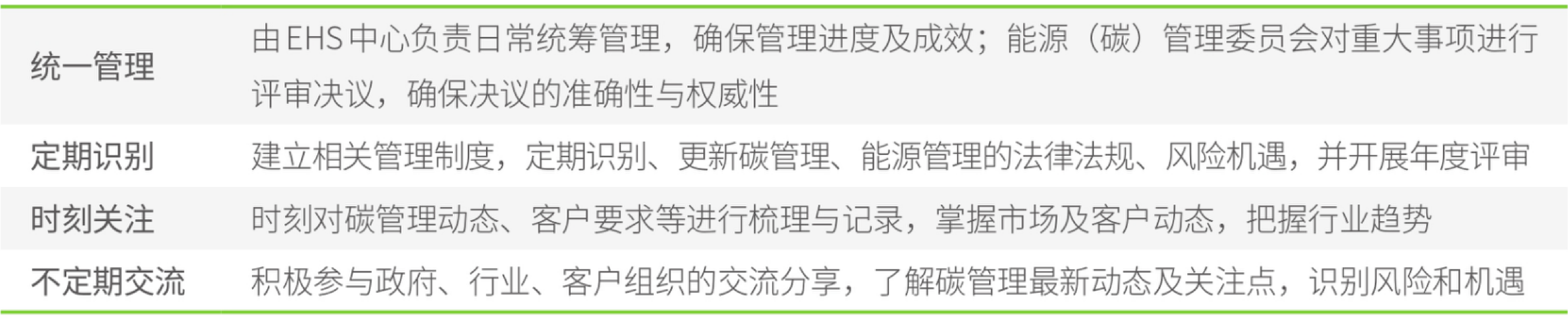 基于公司发展战略,极力推动内驱式绿色发展,统筹实施提升管理能力、优化能源结构、强化供应商碳管理、推进低碳评级认证等方面措施,坚持将绿色低碳理念全方位融入生产及运营的各个环节。